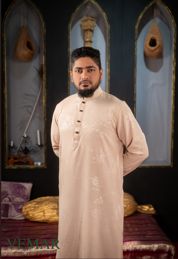 Flower Design Luxury Panjabi – Eid-ul-Fitr Collection Cream
