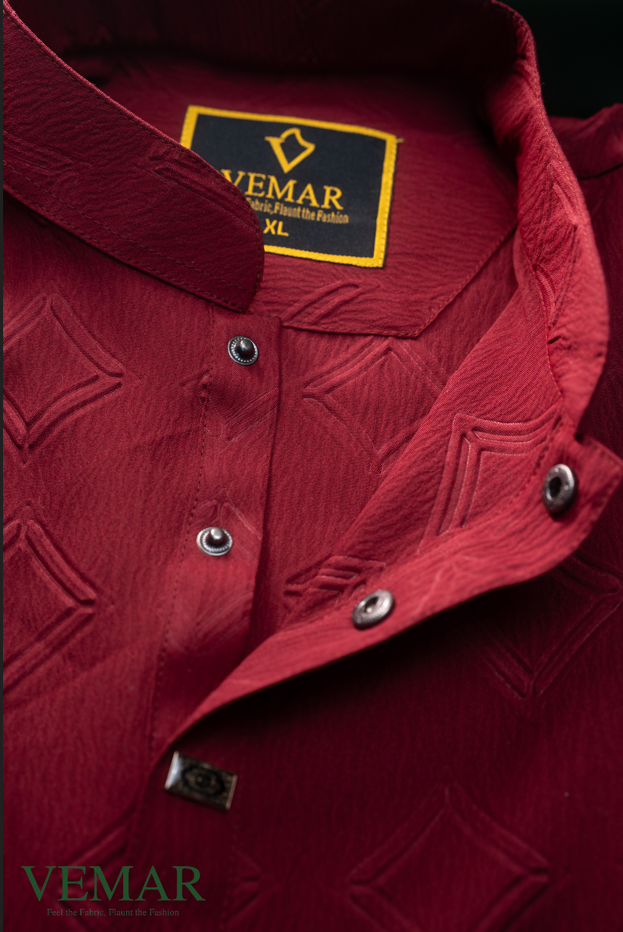This Eid, make every moment royal. Vemar Luxury Katan Punjabi – premium Katan silk fabric, diamond cut geometric weave, rich luster and elegant texture, classic stand collar, and perfect festive length. Featuring intricate diamond pattern, refined button detailing, and superior drape – ideal for Eid-ul-Fitr prayers, family gatherings, and festive celebrations.