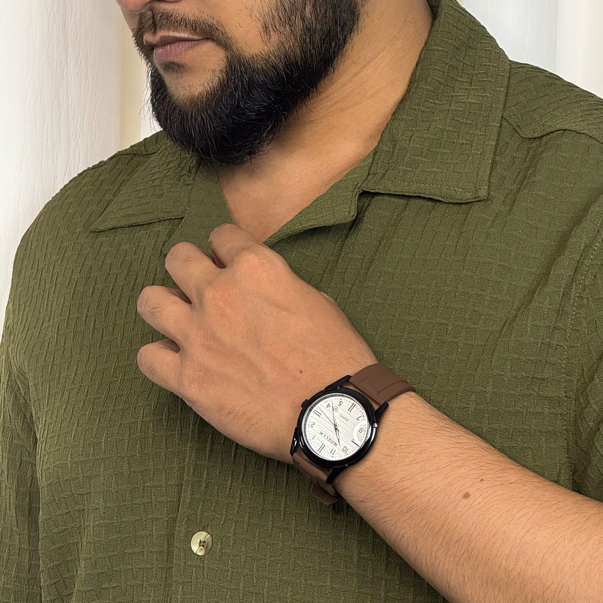 Be the first to review “Royal Cuban Collar Box Design Half Sleeve for Man Olive Green”