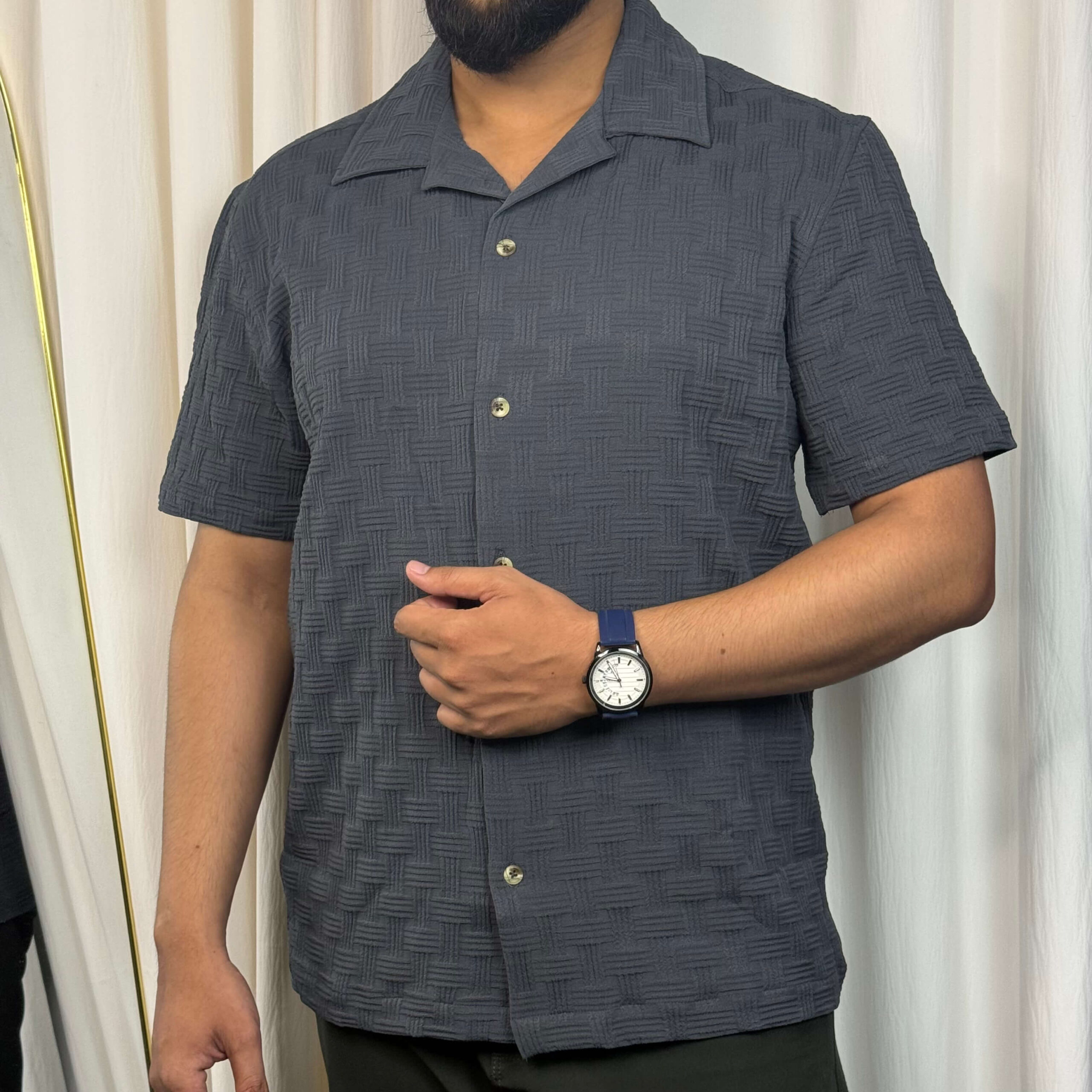 Be the first to review “Royal Cuban Collar Cross Design Half Sleeve for Man Gray”