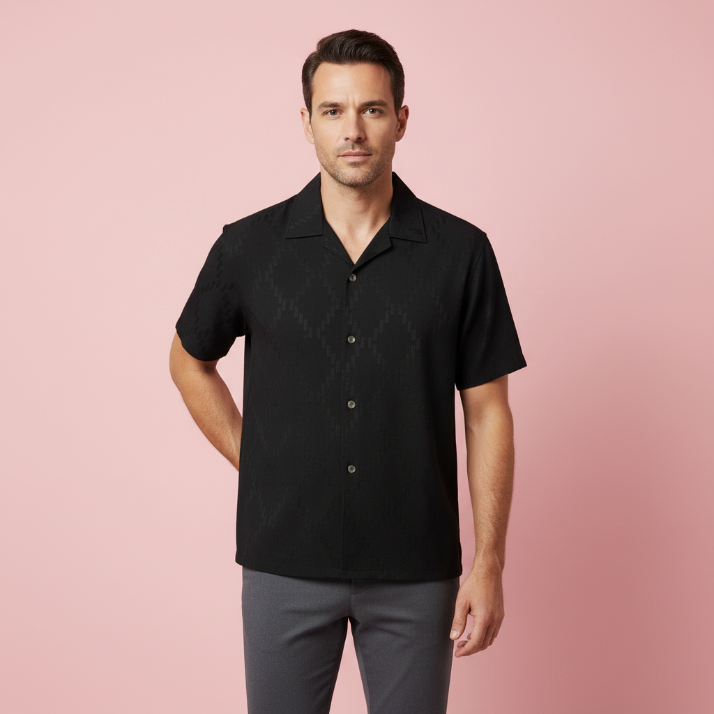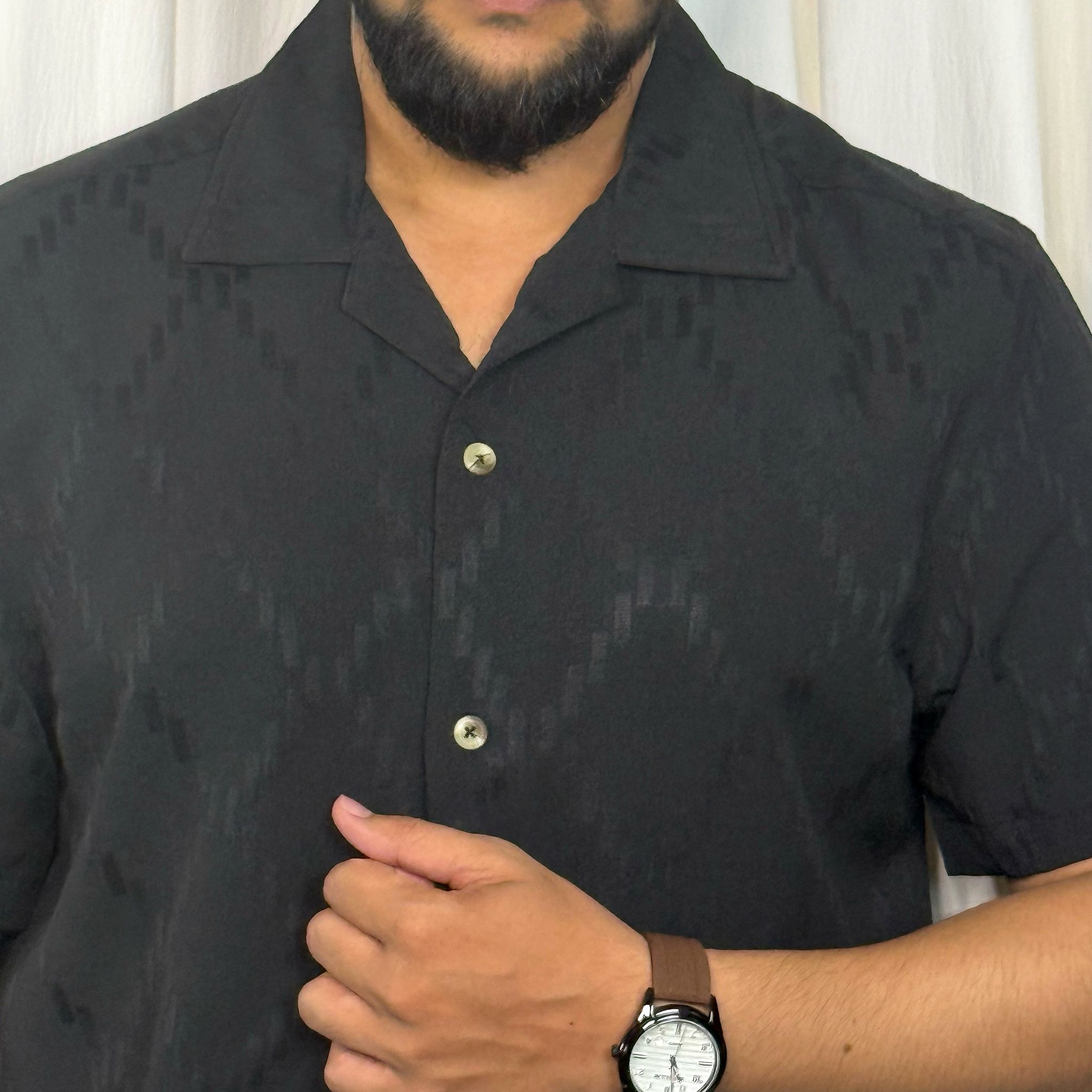 Royal Cuban Collar Diamond Design Half Sleeve for Man Black