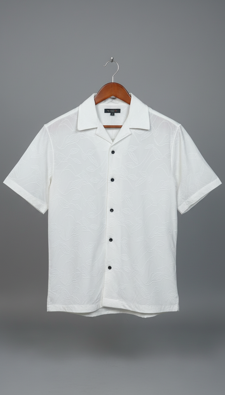 Royal Cubon Collar Knit Leaf Design Half Sleeve For Men