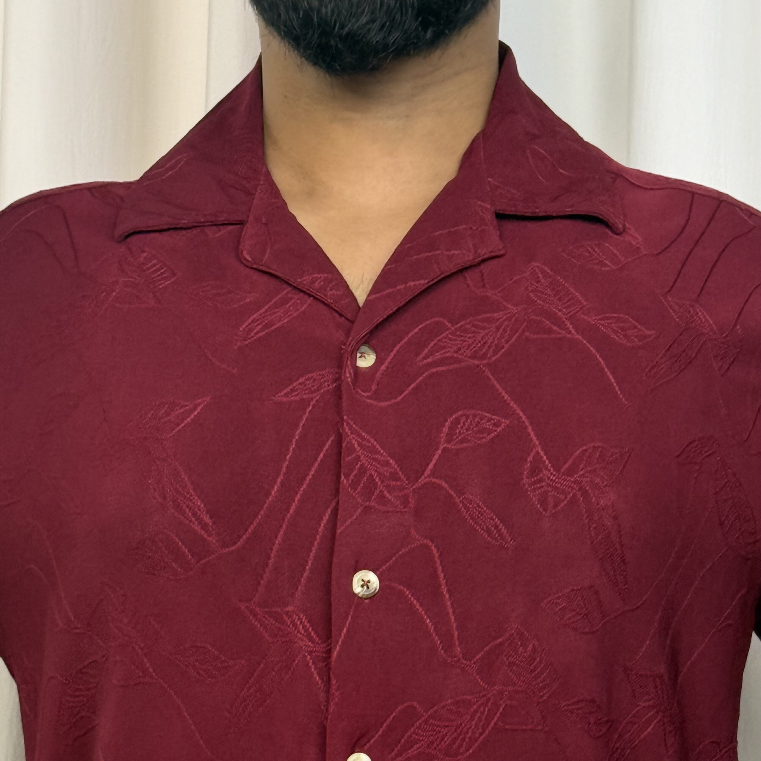 Royal Cubon Collar Knit Leaf Design Half Sleeve For Men Maroon
