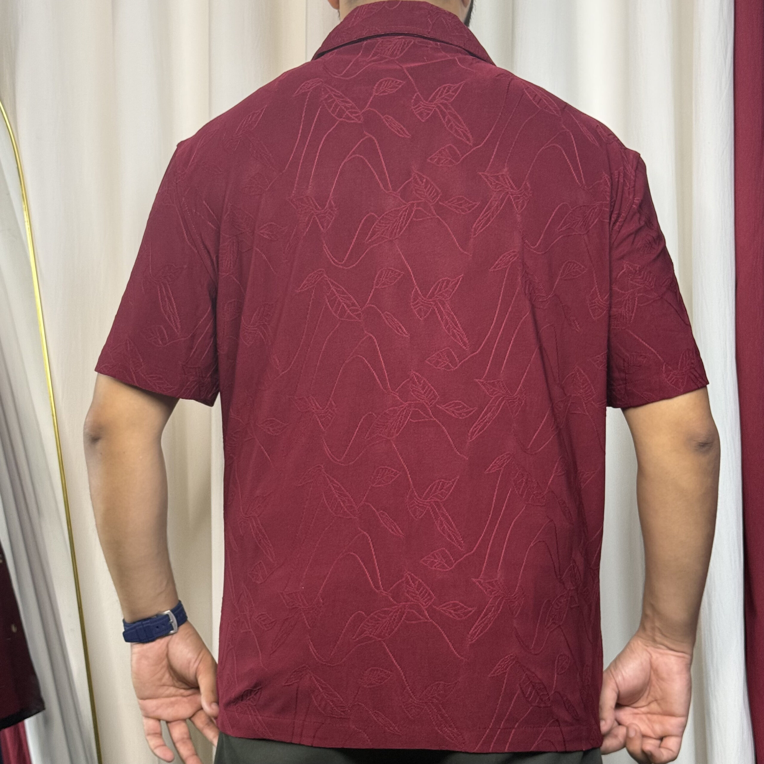 Be the first to review “Royal Cubon Collar Knit Leaf Design Half Sleeve For Men Maroon” Cancel reply