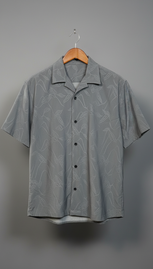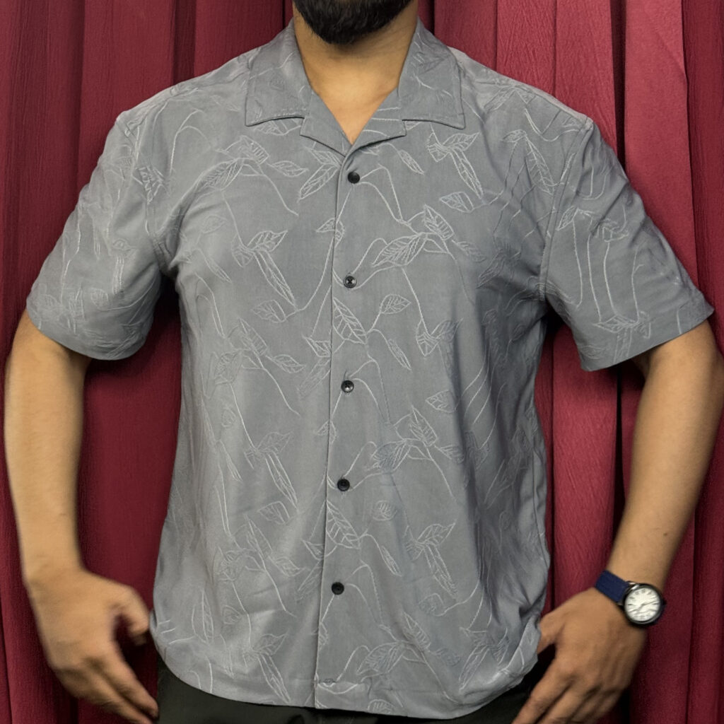 Royal Cubon Collar Knit Leaf Design Half Sleeve For Men Gray