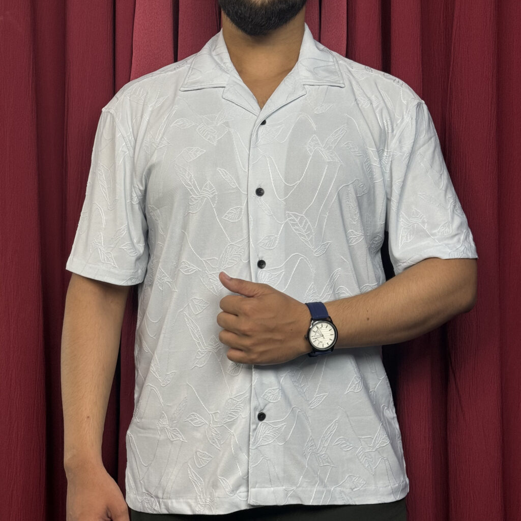 Royal Cubon Collar Knit Leaf Design Half Sleeve For Men Cream